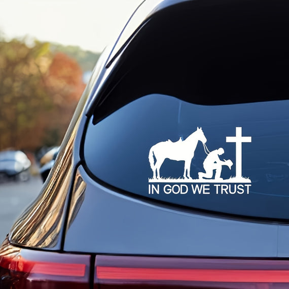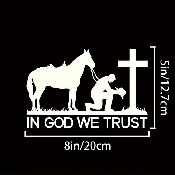Cowboy Praying To God Cross, In God We Trust, Christian Sticker For Car Window, Truck Or Laptop, Tablet, Home Decor Sticker